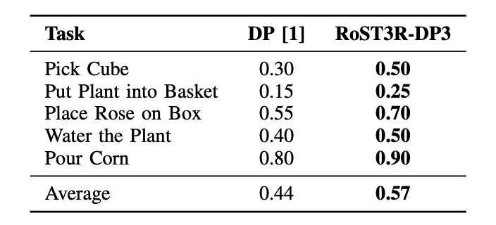 Quantitatively, Our RoST3R 3D representation demonstrates superior generalization ability compared to its 2D-based counterparts.